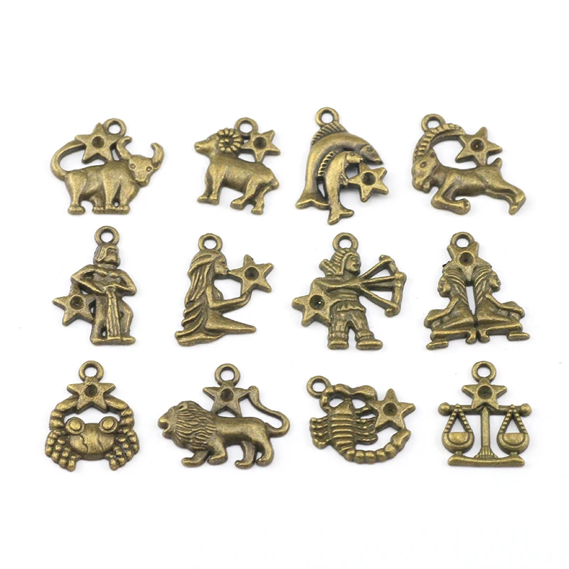 12 Teile/los Antike Bronze Oder Antike Silber Überzogene Schmuck Diy Sternzeichen Charms Fü...