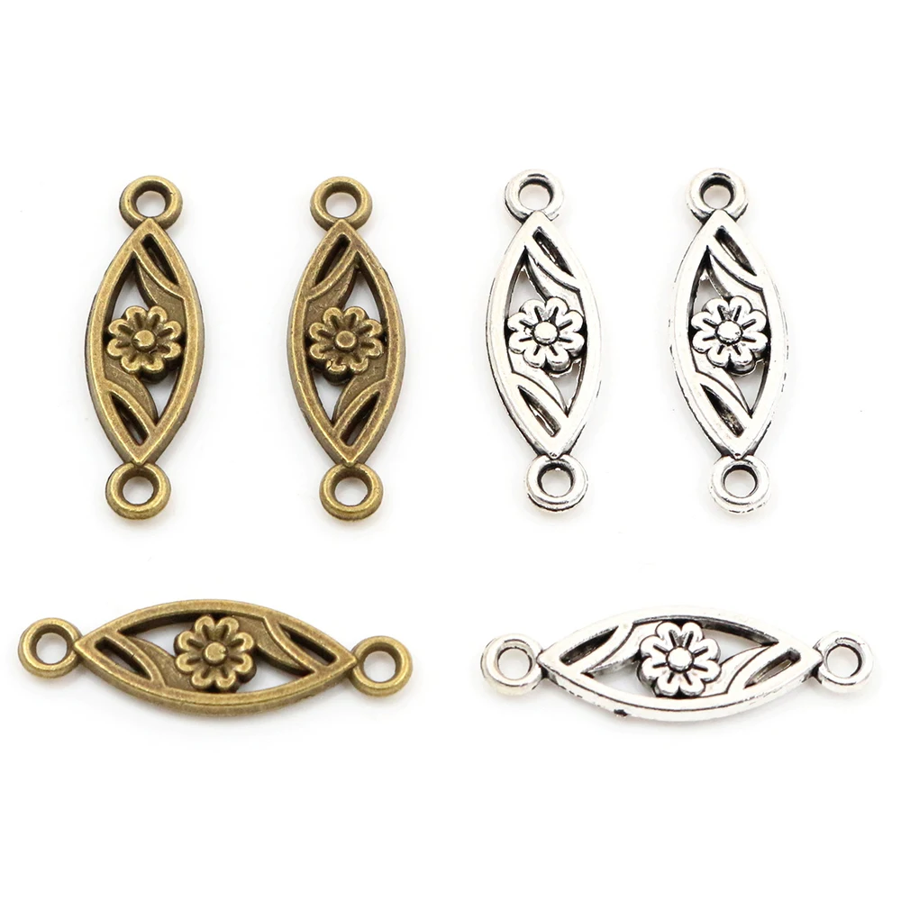 23x7mm 20 stücke antike Bronze und antike versilberte Blumen Stil Stecker hand gefertigte Charm...