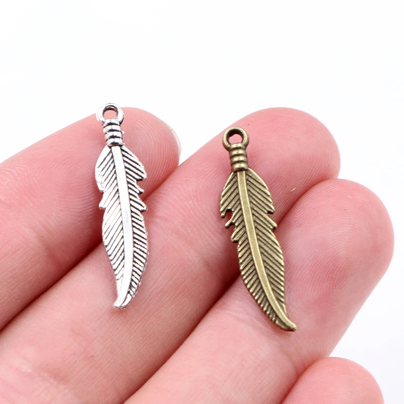 Charms Feder 20 Stück 27 x 7 mm tibetische Bronze Antik Silber Farbe Anhänger Antik Schmuc...