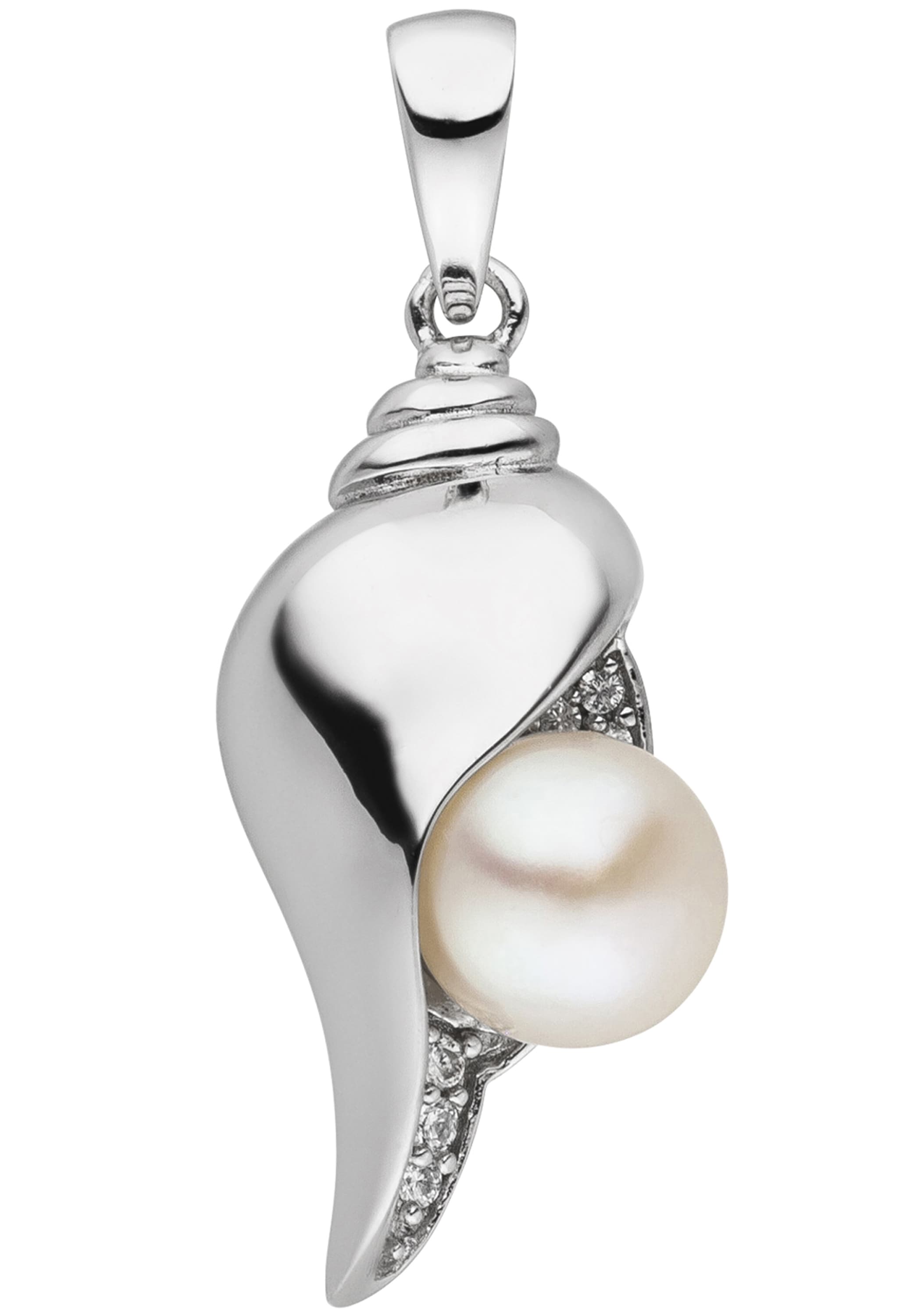 Anhänger 'Muschel' aus 925 Sterlingsilber, rhodiniert, mit einer Süßwasser-Zuchtperl...
