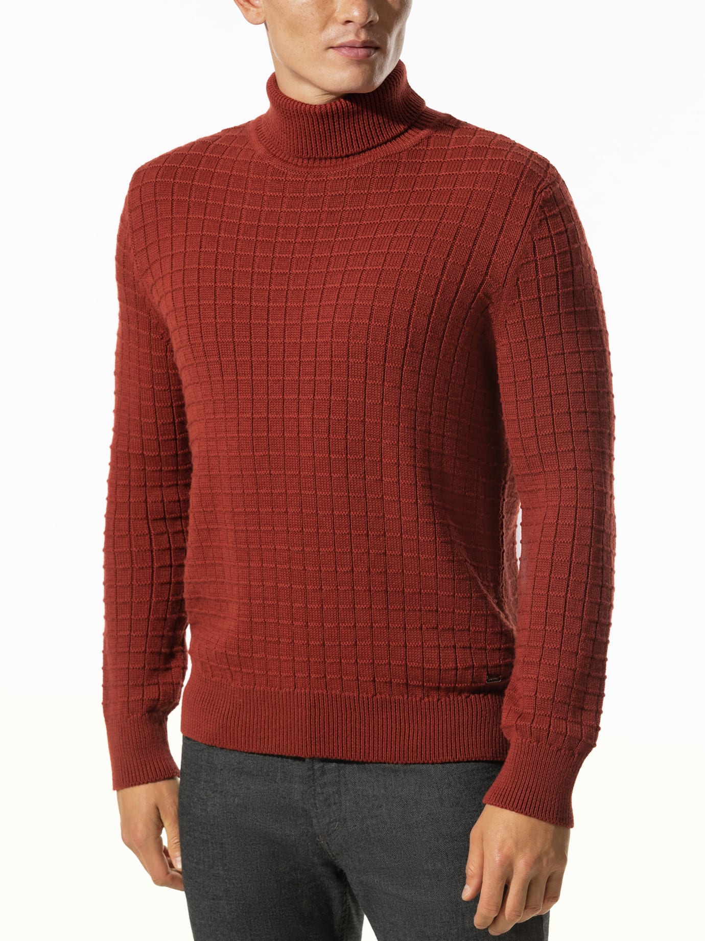 Walbusch Herren Struktur-Rolli Merino-Mix Rot