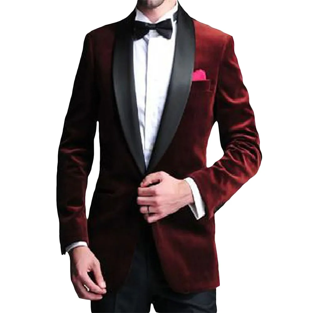2 Stück Burgunder Samt Männer Hochzeits anzug lässig Bräutigam Smoking Schal Rev...