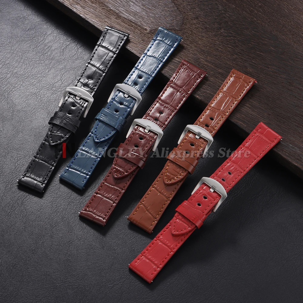 Vintage Leder Uhrenarmband für Seiko für Omega 18mm 20mm 22mm Schnellverschluss Riemen Bam...