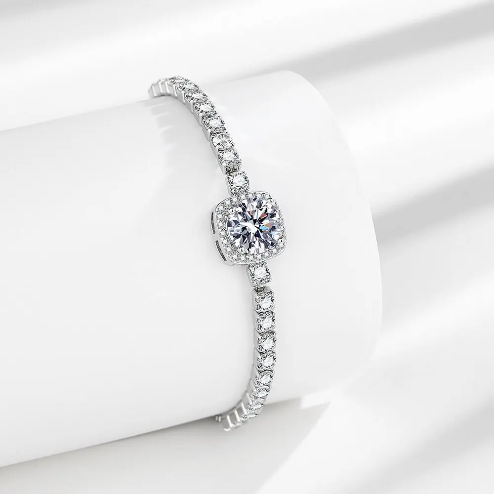 2 Karat Prinzessin Quadratische Tasche Imitation Moissanit Zirkon 925 Sterling Silber Armband Damen ...