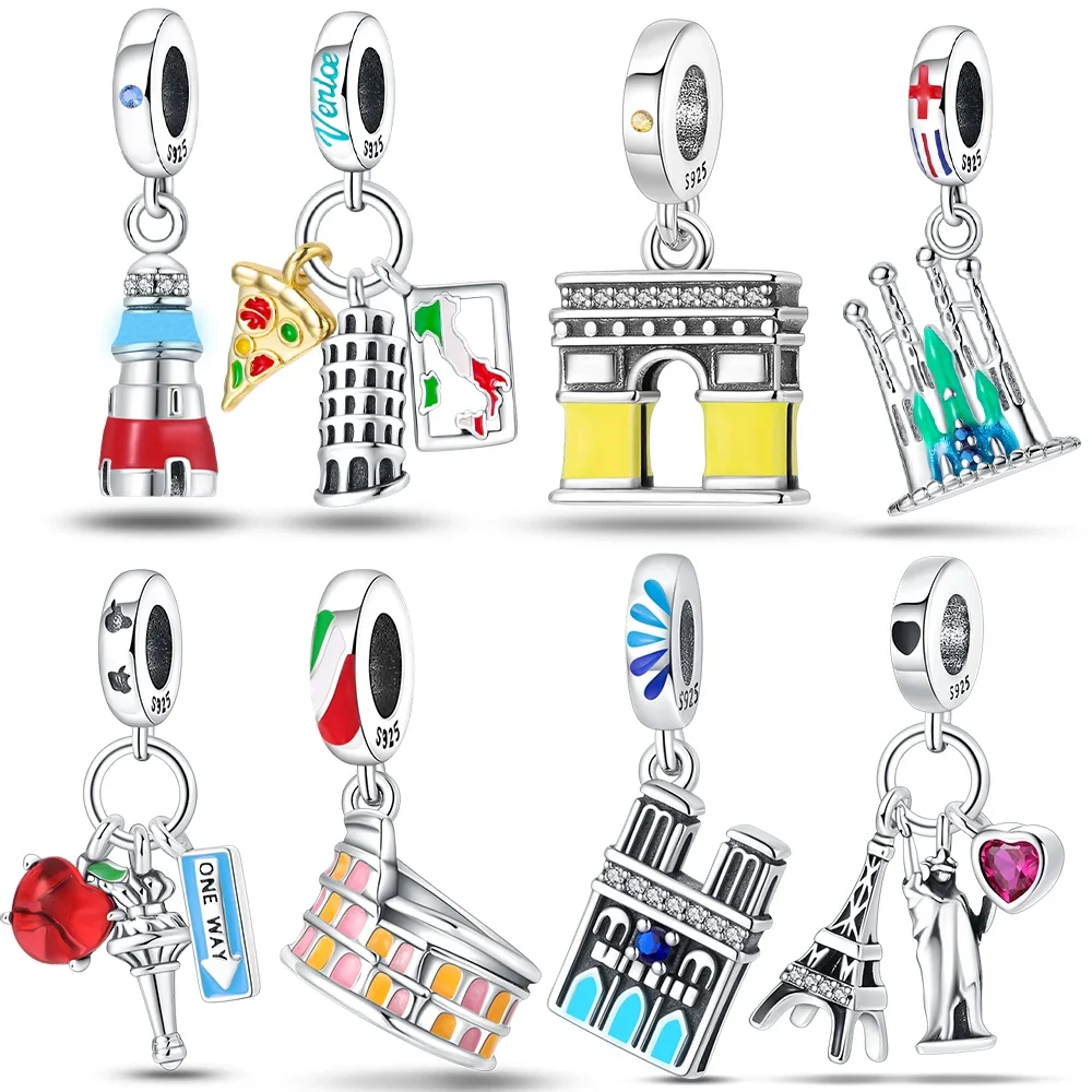 Chanrms 925er-Sterlingsilber, Architekturserie, Leuchtturm, Kirche, Kolosseum, passend für Dame...
