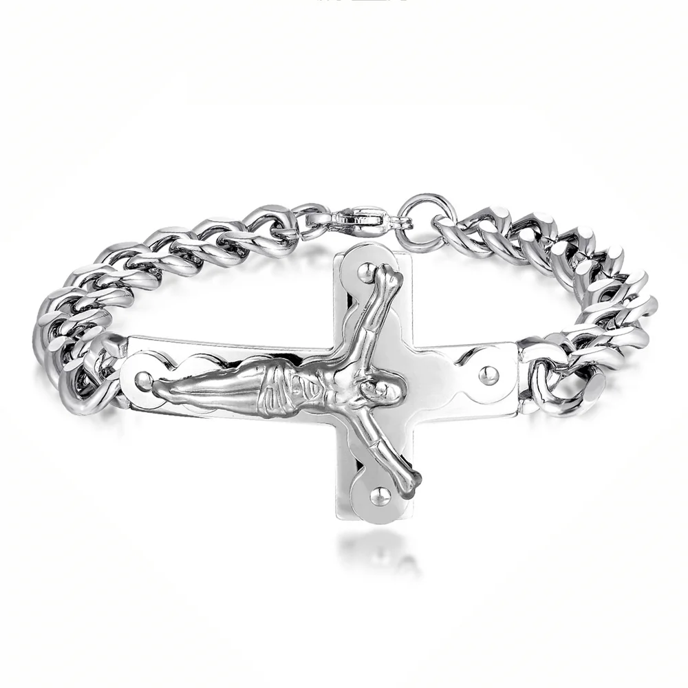 Punk Kruzifix Jesus Kreuz Charm Armband männlich Silber Farbe Edelstahl kubanische Hand kette f...