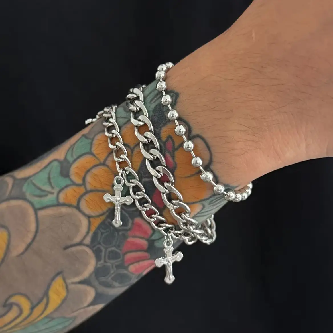 Ingemark Punk Hip Hop Silber Farbe Metall Kette Armbänder Männer Goth Vintage Kreuz Anh&au...