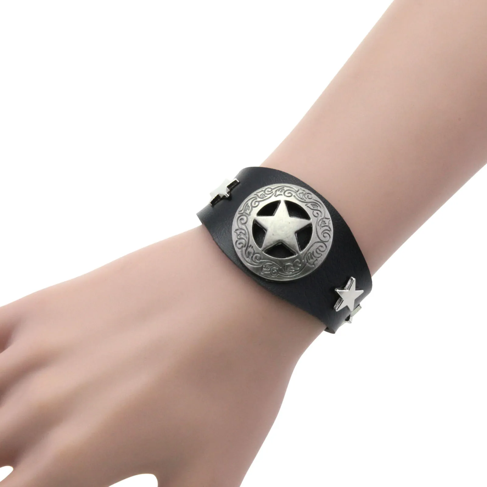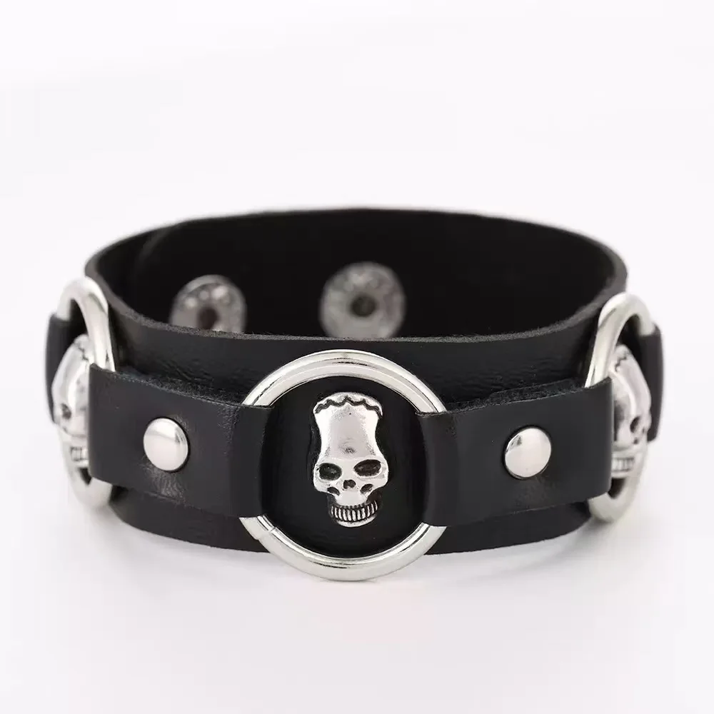 Neues Gothic-Punk-Totenkopf-Pentagramm-Armband aus PU-Leder für den täglichen Gebrauch von...
