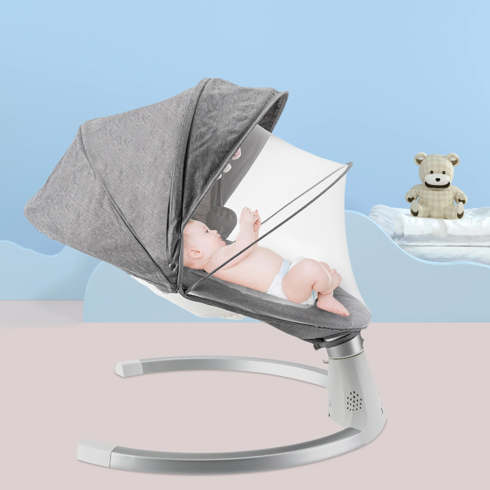 Grauer intelligenter elektrischer Babywippe, intelligenter elektrischer Babywippe mit Moskitonetz, p...