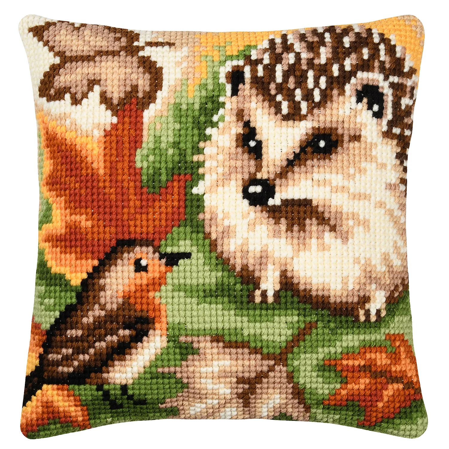 Kreuzstichkissen Igel & Rotkehlchen. Superleicht zu sticken, geeignet für Kinder ab 8 Jahre...