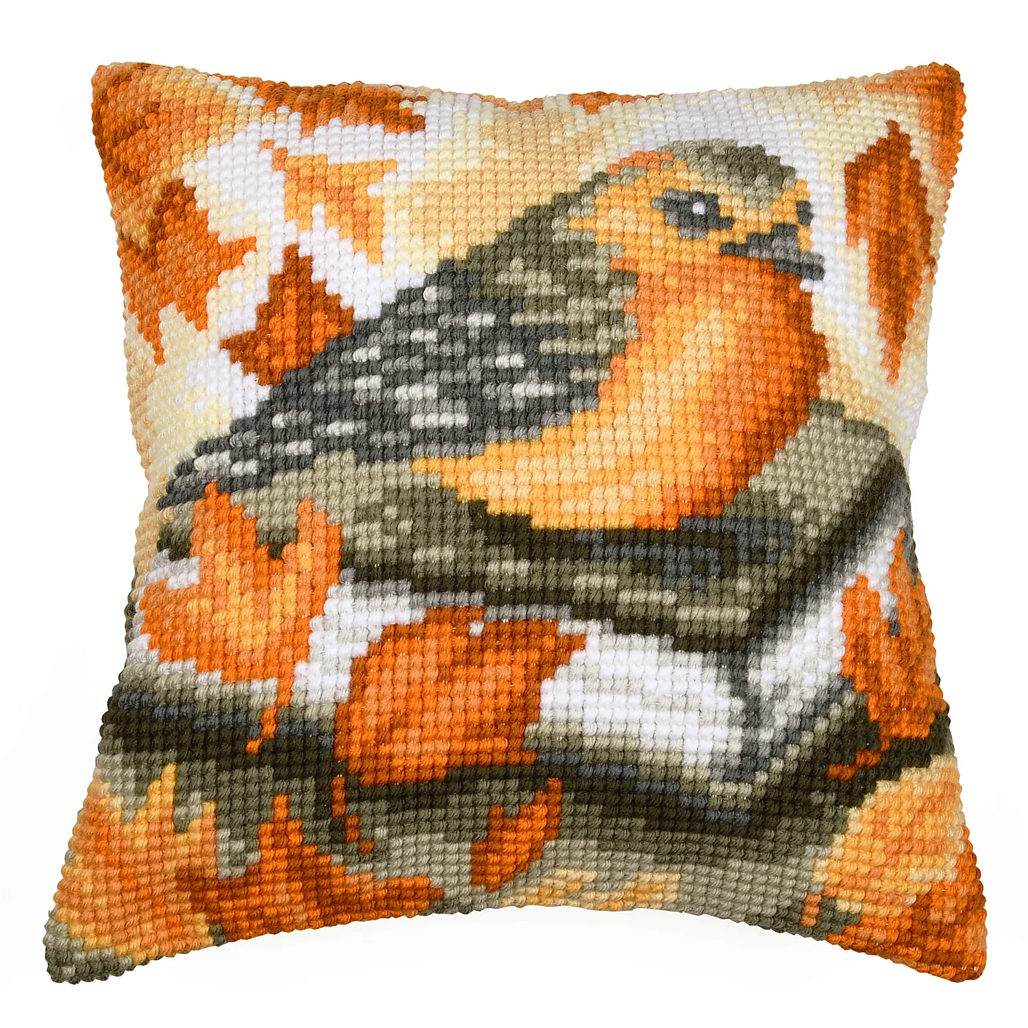 Kreuzstichkissen Rotkehlchen & Beeren. Komplettpackung: Anleitung, Garn, Sticknadel. Ohne Kissen...