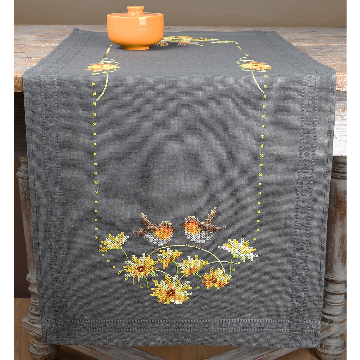 Stickläufer Lustige Rotkehlchen, zum Besticken in Kreuz-, Spann- und Stielstich. Vorgedrucktes ...