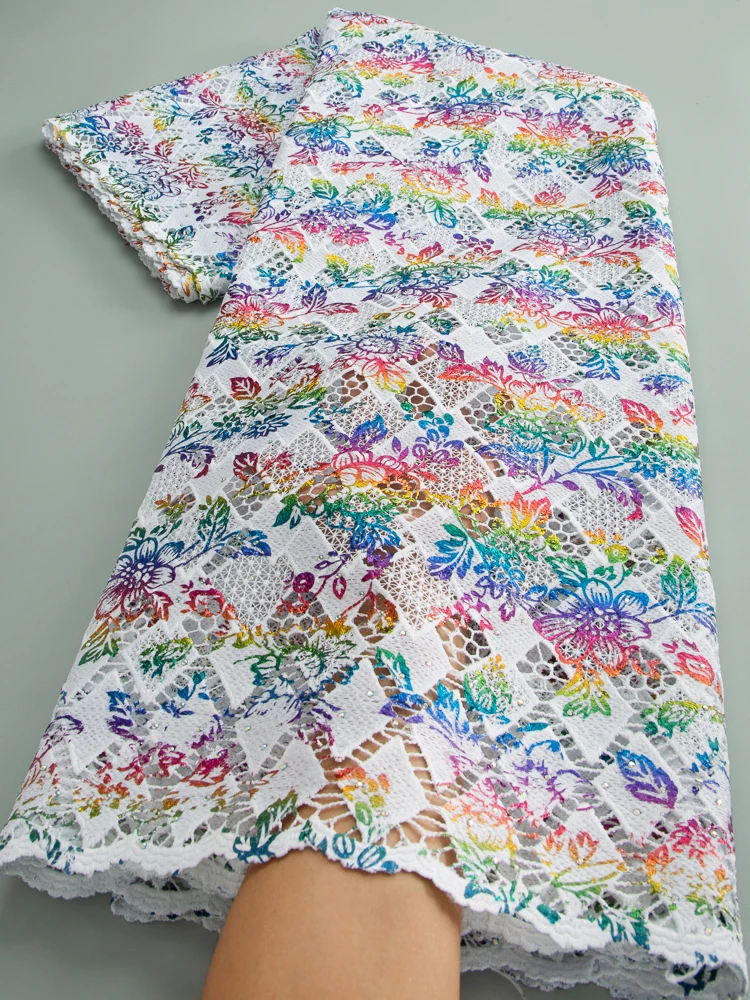 2024 hochwertige afrikanische wasser lösliche Spitze Stoff nigerian ische Pailletten Guipure Co...