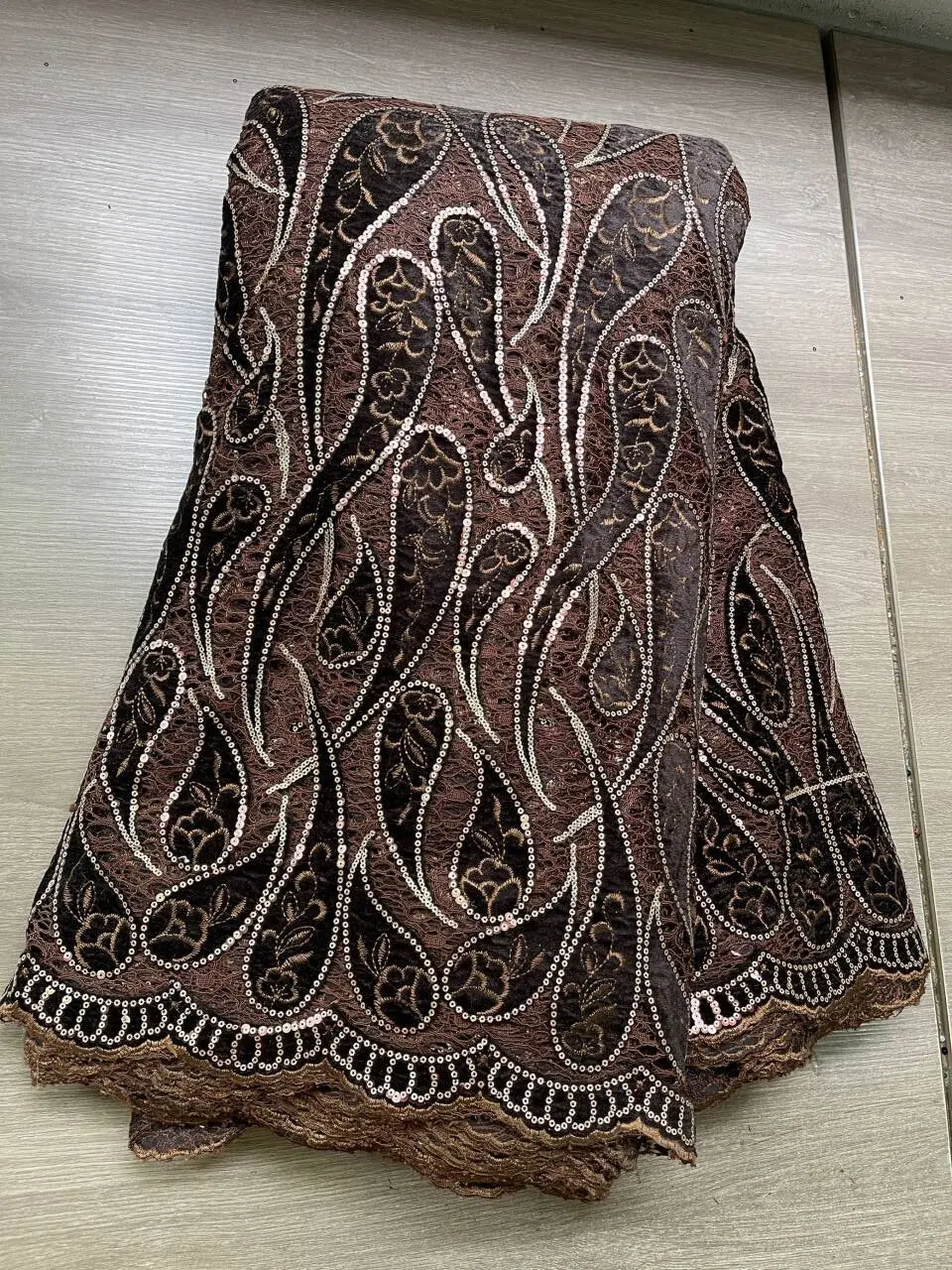 2025 Neuer afrikanischer Samt-Spitzenstoff, 5 Yards, hochwertiges Hochzeitskleid, luxuriöse Pai...