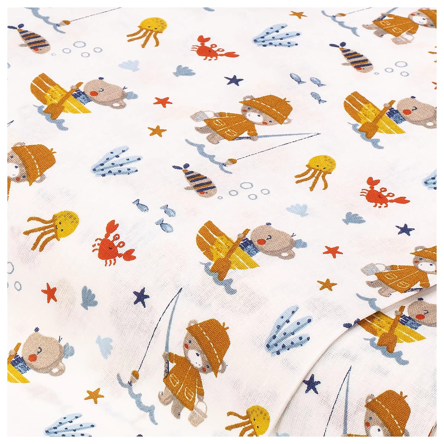 Baumwollstoff Bären am Meer, Farbe: weiß-color, Motivgröße Angler: 4 x 3 cm, R...