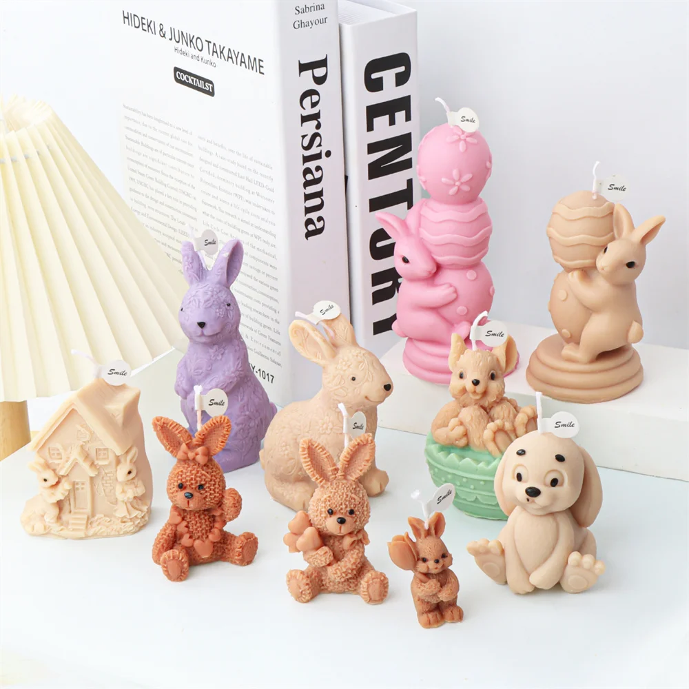Osterhase Kerzenform 3D Kaninchen Kerze Silikonformen Osterhase Harzgussform für DIY Kerzenhers...