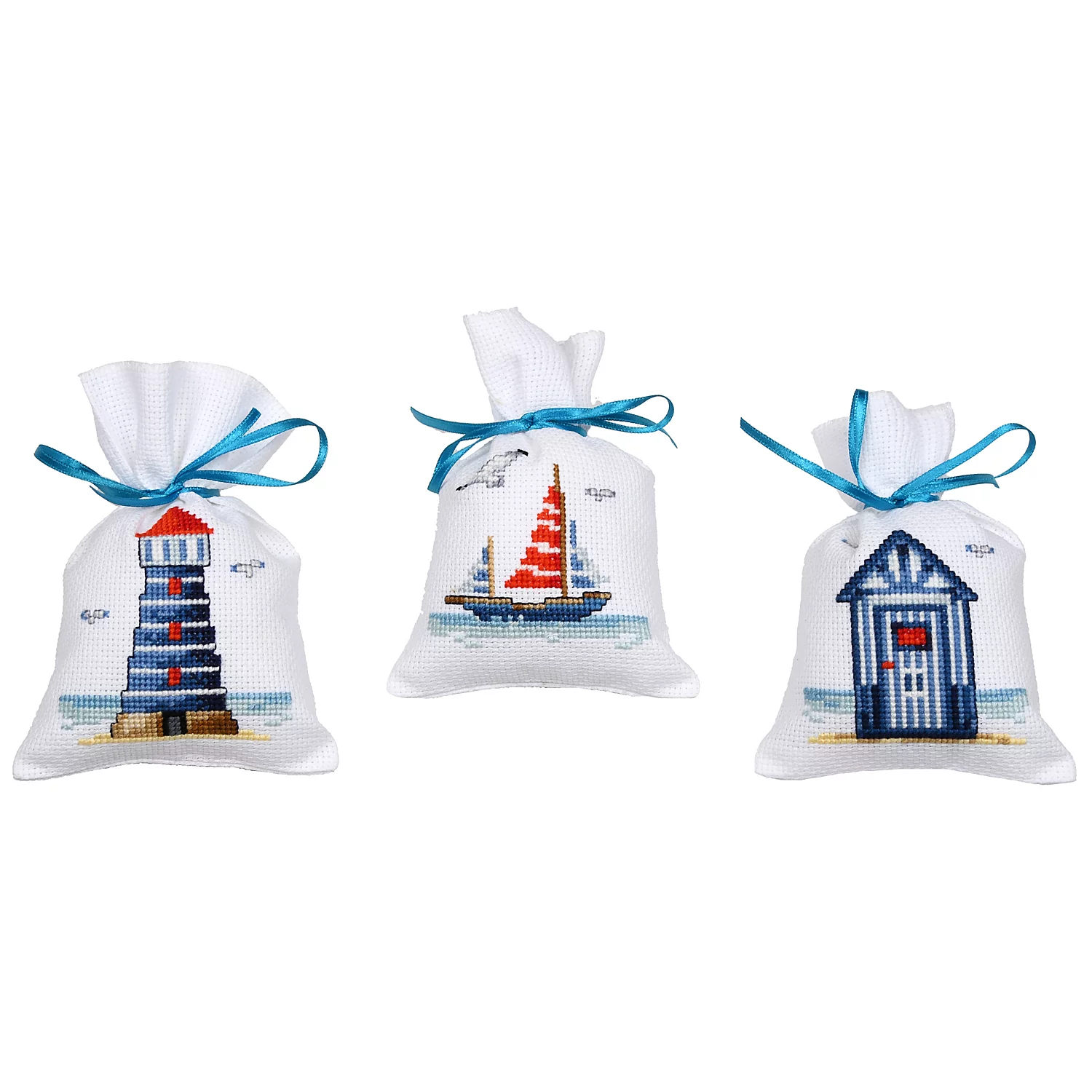 Geschenksäckchen Maritim im 3er-Set, zum Besticken in Kreuzstich nach Zählvorlage (ca. 7 S...