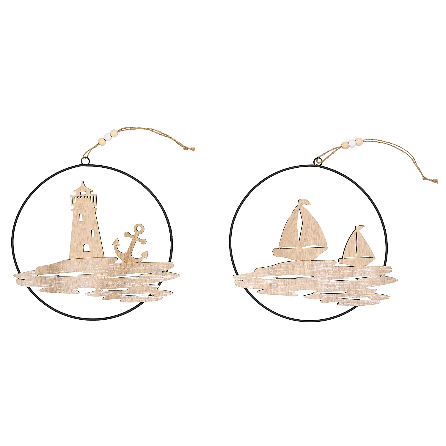 Drahtringe Maritim aus Metall, mit Deko-Elementen aus Holz zum Bemalen und Verzieren, mit Öse, ...