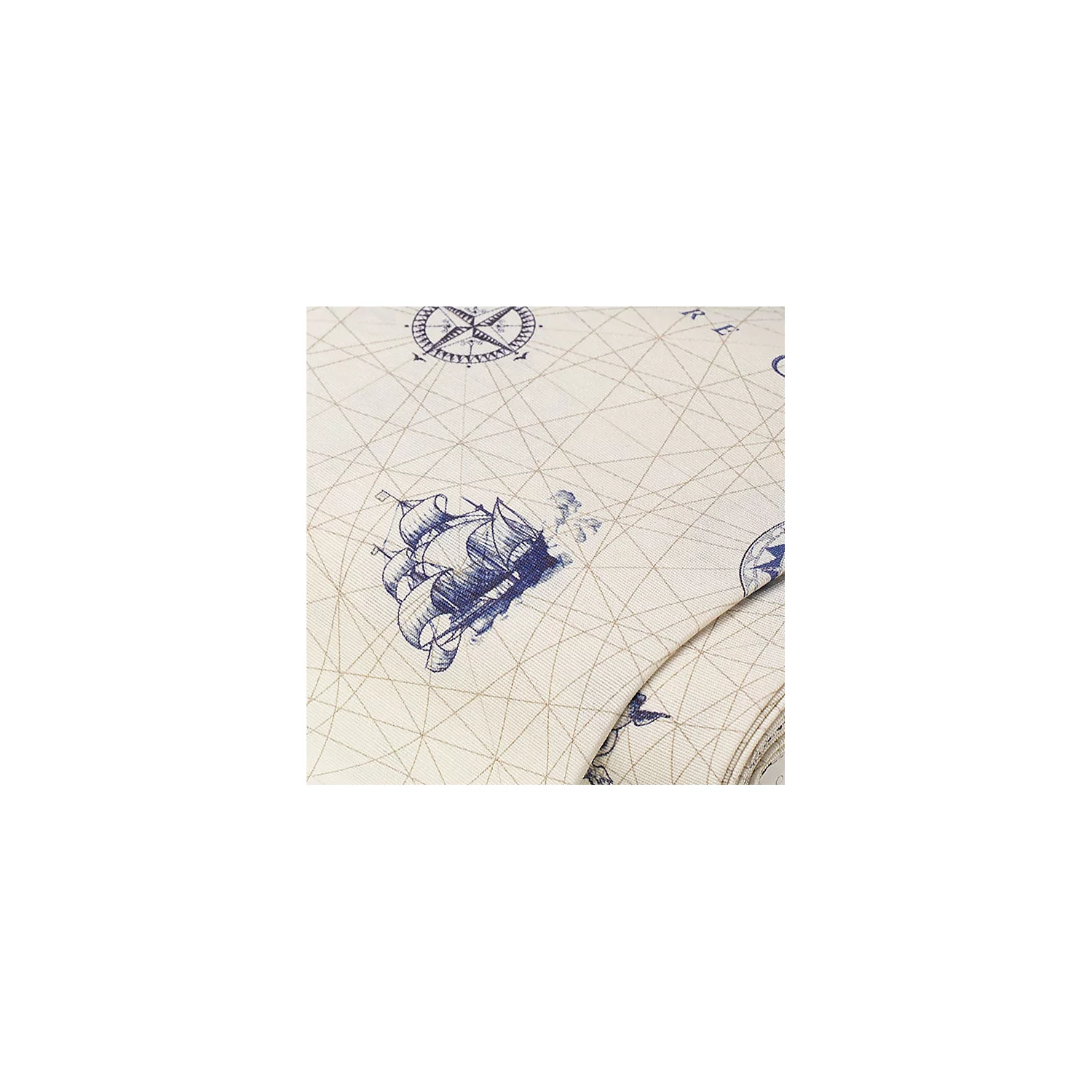 Dekostoff Maritim aus der Serie Lorena, Farbe: natur/blau, Motivgröße Schiff: 5,5 x 6,2 c...
