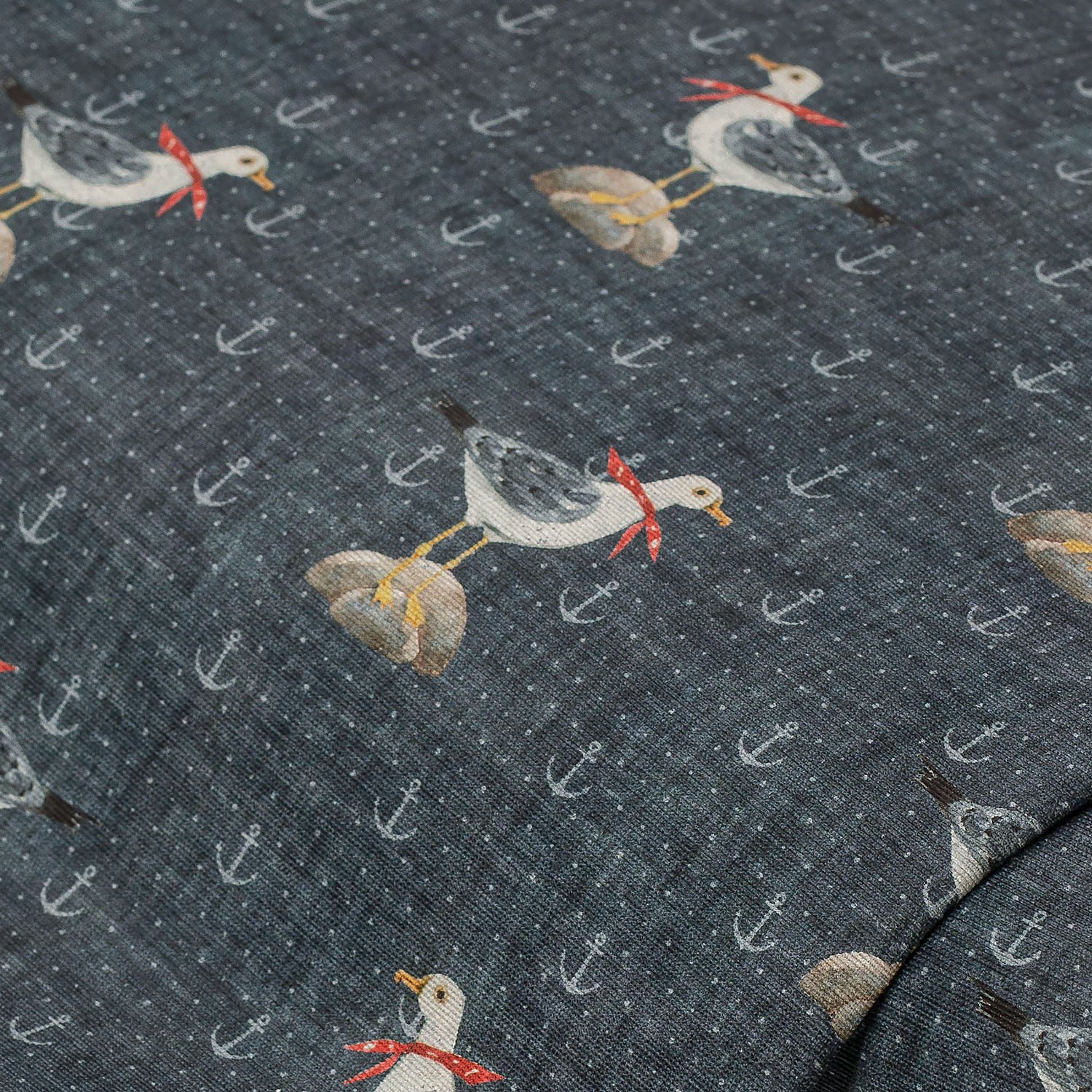 Dekostoff Möwen Maritim aus der Serie Lorena, Farbe: blaugrau-color, Motivgröße M&ou...