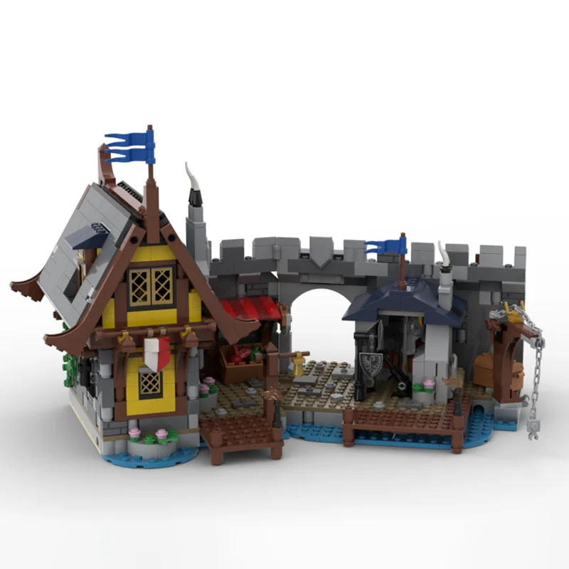 MOC-Bausteine bauen Spielzeug zusammen. Mittelalterliches Hafenmodell, 1226 Stück. Kreatives We...