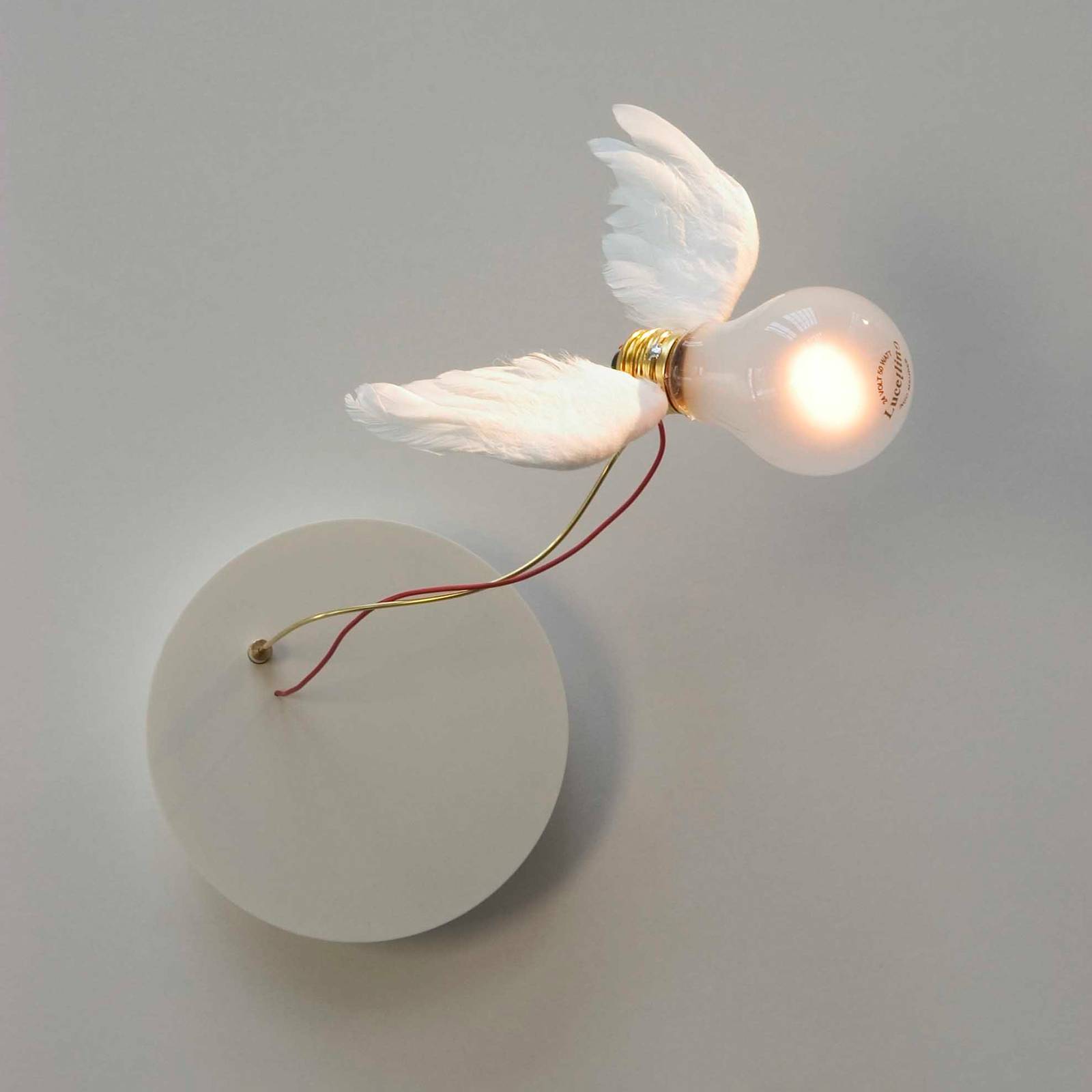 Die LED-Wandleuchte Lucellino NT vermittelt den Eindruck von einem davon fliegenden Vögelchen. ...