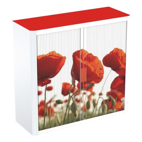 easyOffice Rollladenschrank Motiv rote Blumen rot, 110x104x41.5 cm