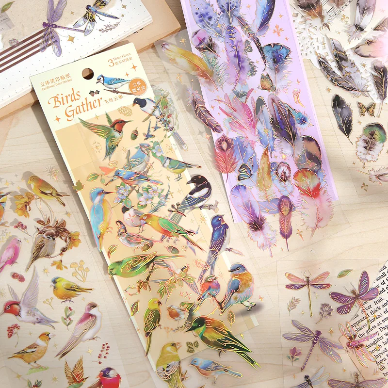 3 Stück Kawaii Briefpapier Feder Libelle Vogel Qualle Dekorative Journal Aufkleber Scrapbooking...