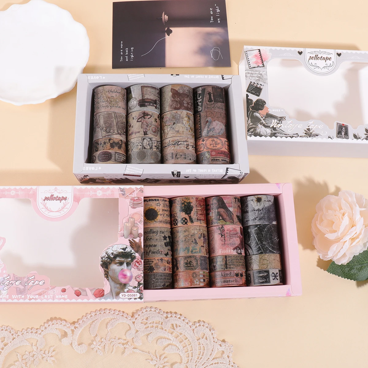 16 Rollen/Karton mit Washi-Tape mit Vintage-Zeitung und Blumenmuster, handgefertigte DIY-Notizbuch-A...