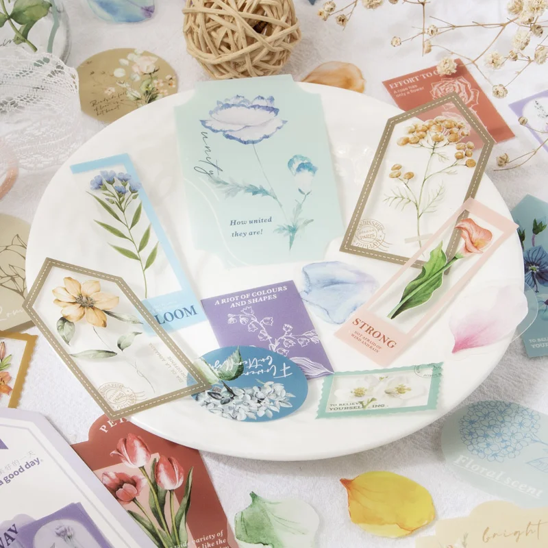50 Stück Stempel Stil Blumen Aufkleber Set für Journal Pl...