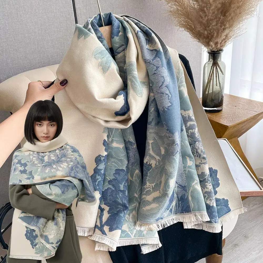 Winter Ethnische Stil Blume Lange Schal Luxus Elegante Weibliche Pl...