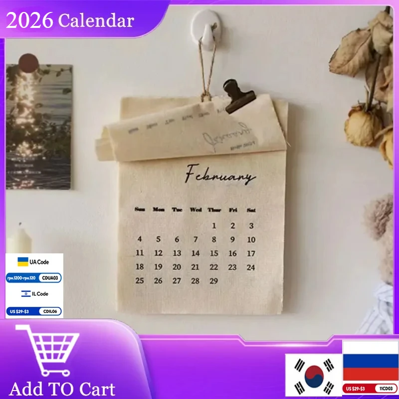 Ins Baumwolltuch 2026 Wandkalender Koreanisch Dekorativ Englisch 2026 Kalender Büro Home Decor ...