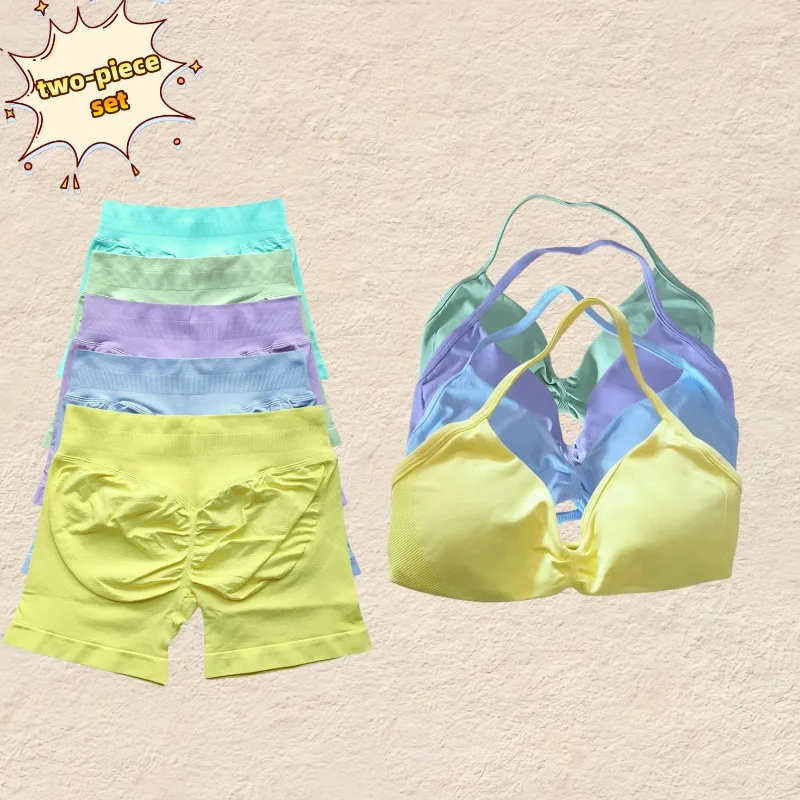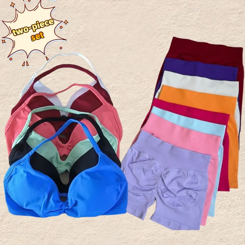 2-teiliges Set 2025 Sommer Hals Weste frauen Fitness Set Hohe Taille Nahtlose Shorts Fitness Set Spo...