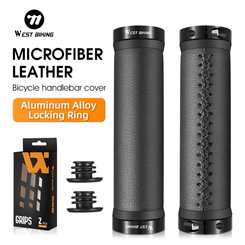 WEST BIKING Fahrradgriffe, stoßdämpfende, weiche PU-Leder-Lenkergriffe, Sperre am MTB, Re...