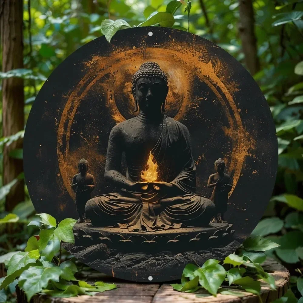 Buddha-Statue-Kranz, Aluminiumschild, Buddha-Statue, thematisches Kranzschild – rundes Alumini...