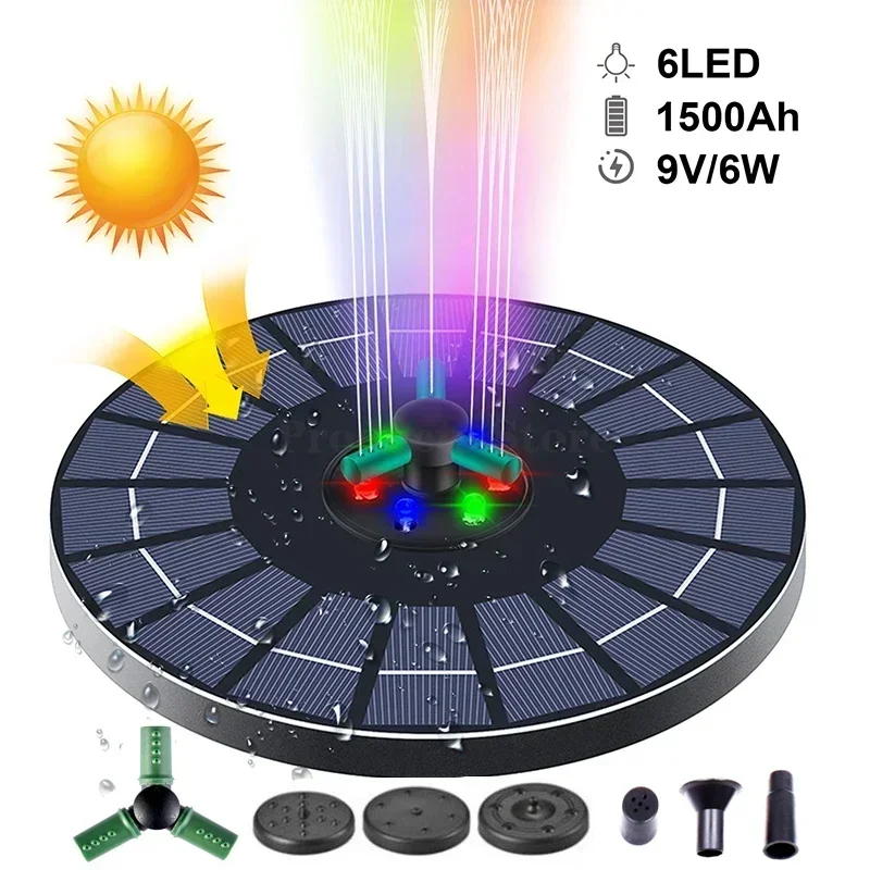 4/6 W Solar-Brunnen-Wasserpumpe mit farbigem LED-Licht für Vog...