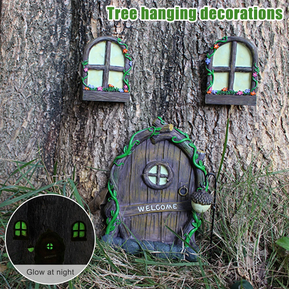 3 stücke Baum Skulptur Garten Gnome Fenster Tür Harz Miniatur Handwerk Elf Leuchtende Hof ...