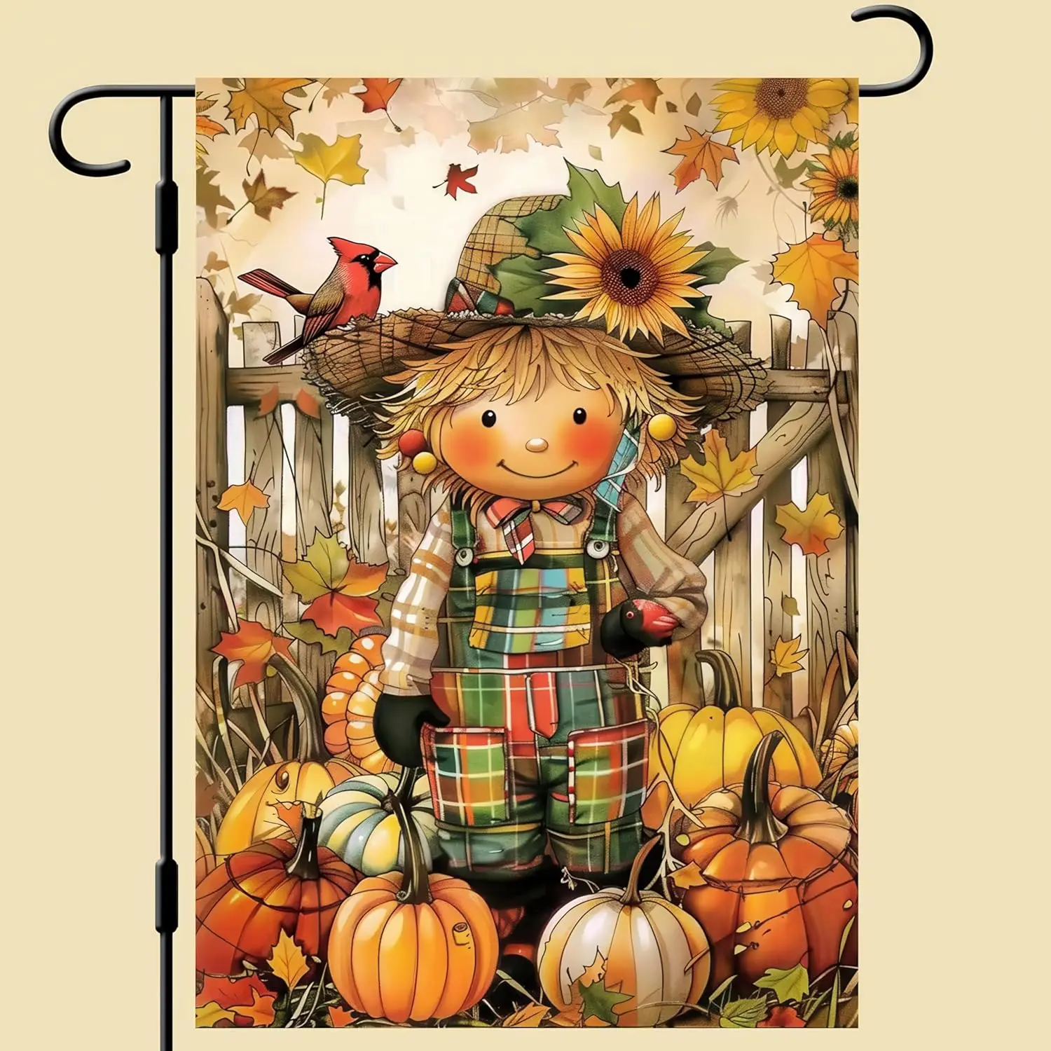 1 Stück Thanksgiving-Herbst-Gartenflagge, 30,5 x 45,7 cm, Vogelscheuche, Gartenflagge, einseiti...