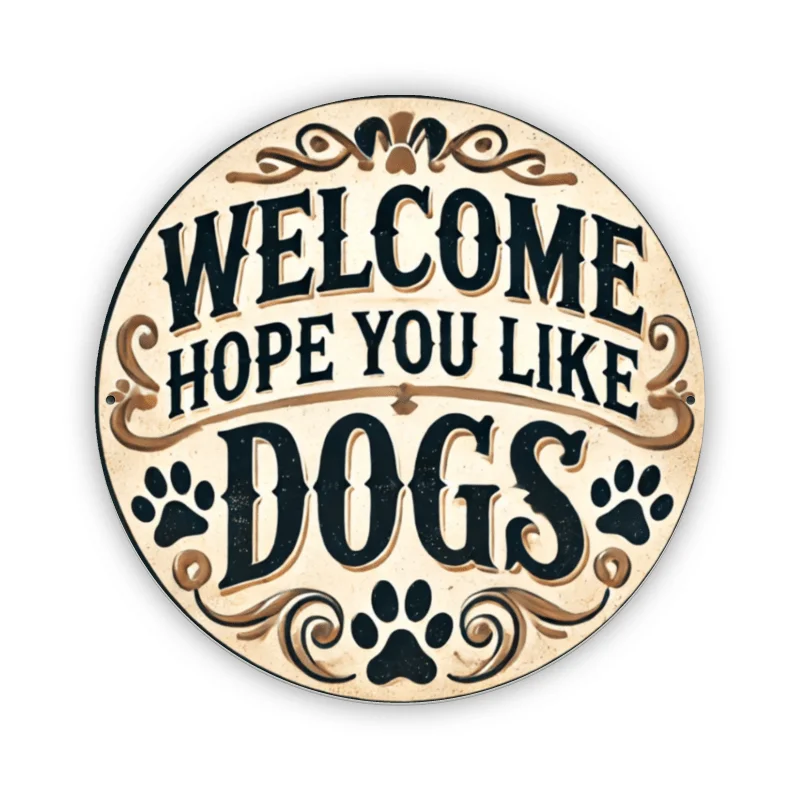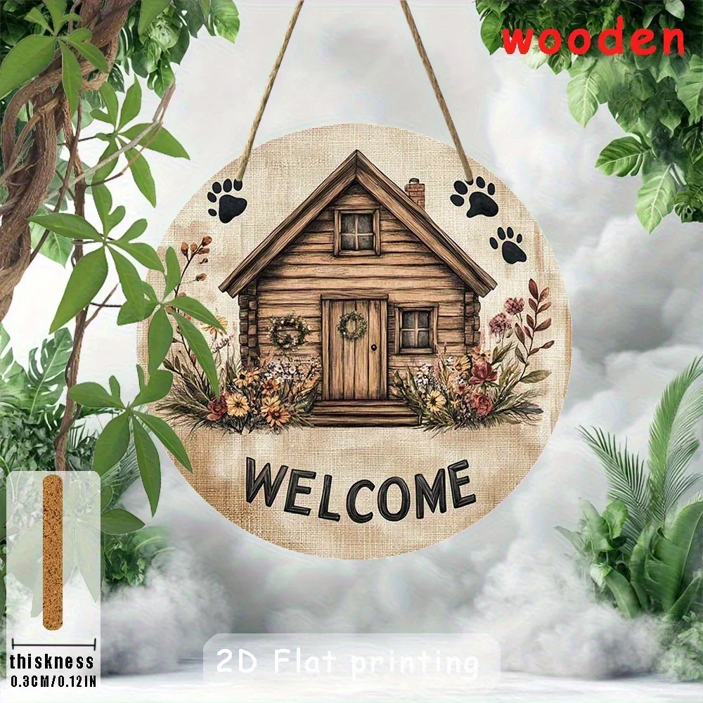 1 x rustikales Eisen-Willkommensschild mit Hundepfotenabdrücken, 7,87 Zoll rundes dekoratives A...