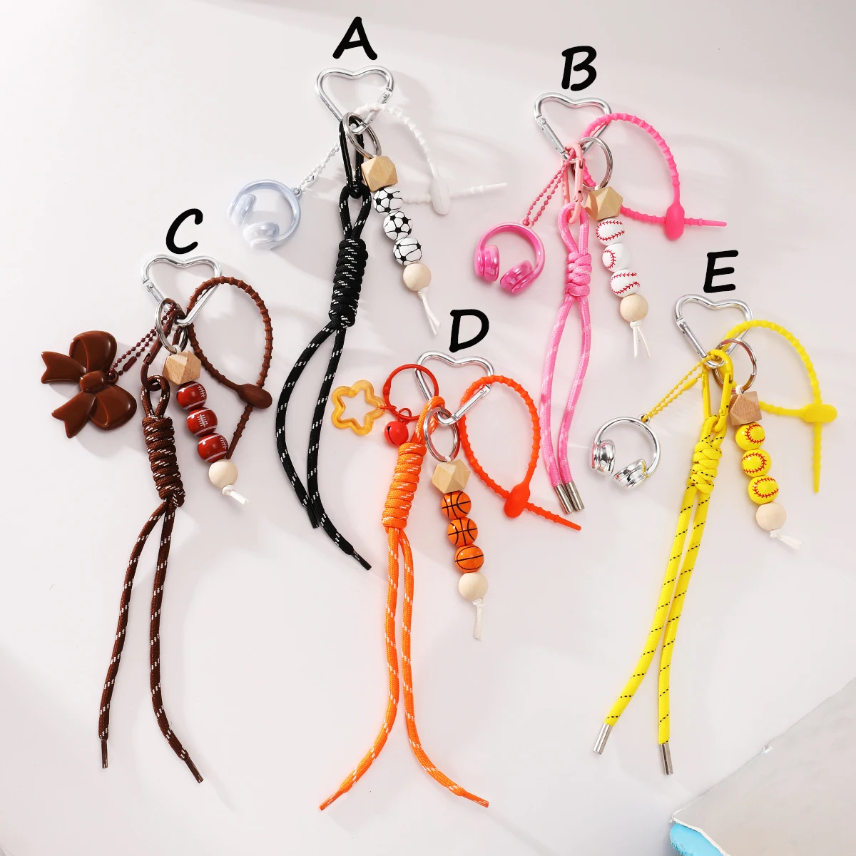 Schleife, Herz-Schlüsselanhänger, gewebtes Polyester-Seil, Perlen, Silikonseil, Tasche, An...