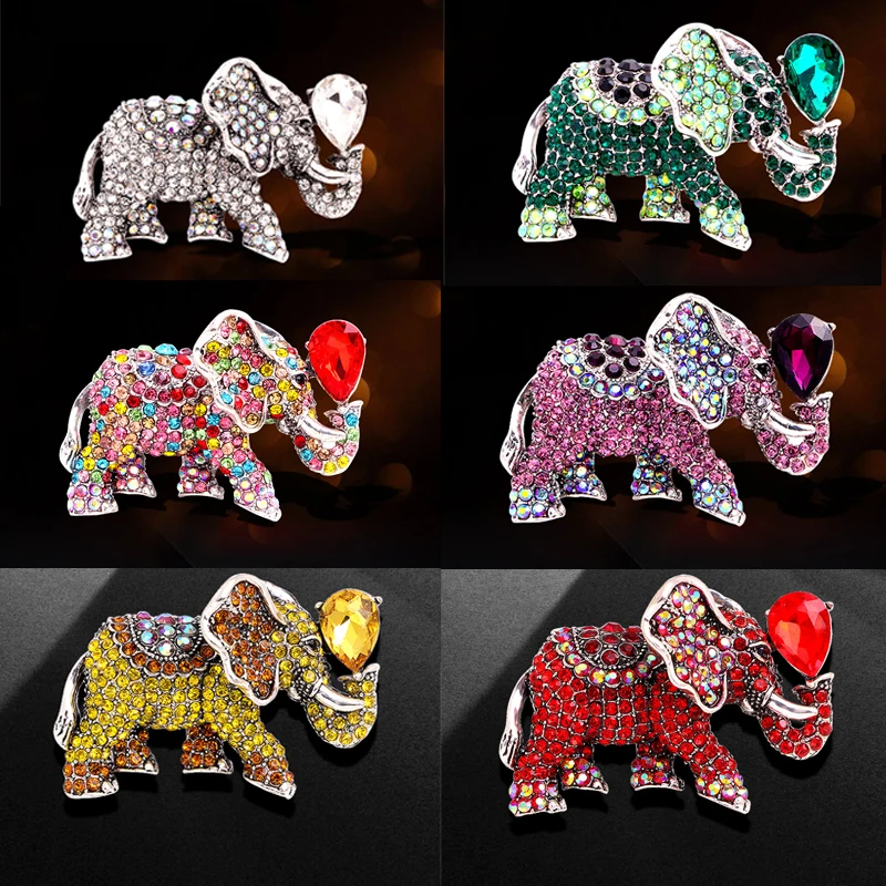 Heißer Verkauf Glänzenden Kristall Auspicious Ruyi Elefanten Brosche Elegante Temperament...