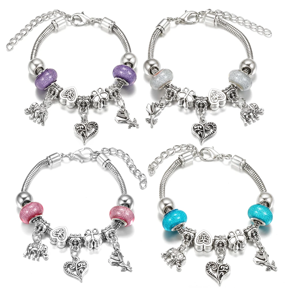 Charme herzförmigen Anhänger 5 Farbe Perlen Armreif Humme...