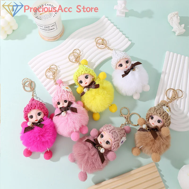 Niedliche große Augen Puppe Pompon Schlüssel bund Tasche Charme für Frauen Tasche Sc...