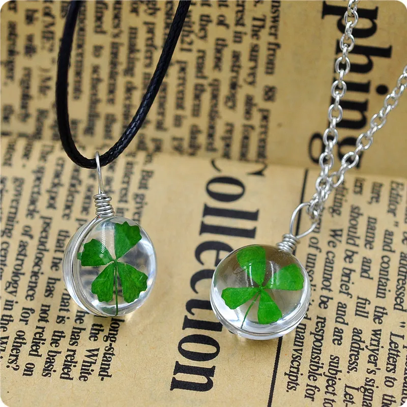Natürliche Löwenzahn Ellipse Klee Kristall Halskette Handgemachte Getrocknete Blumen Anh&a...