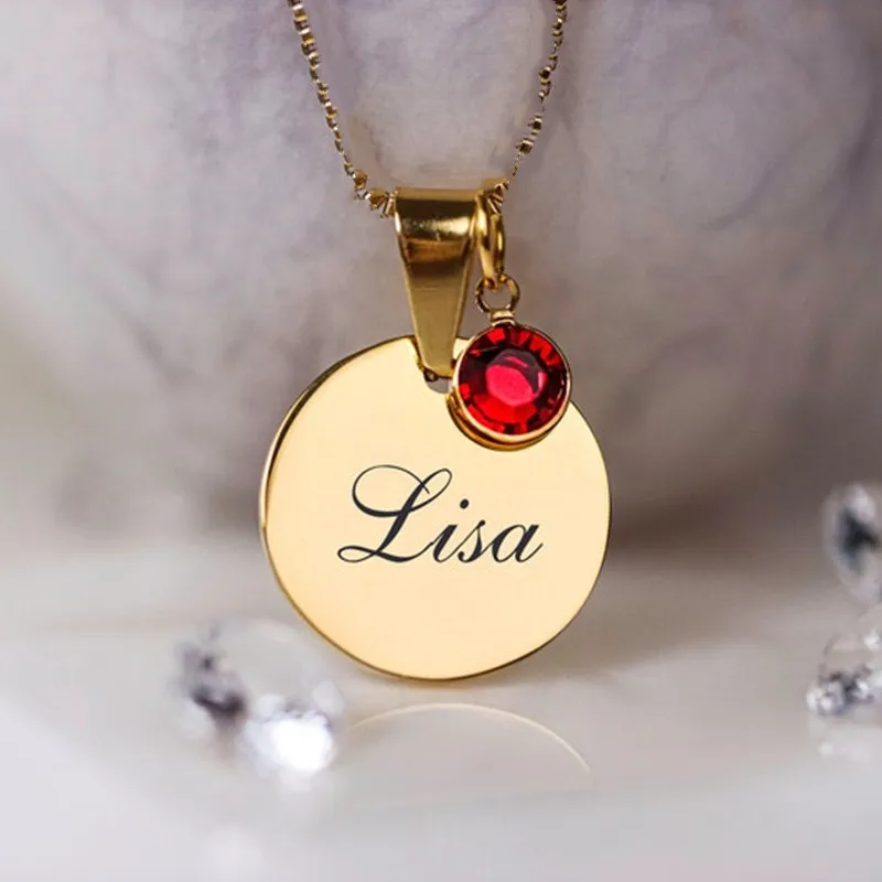 Benutzerdefinierte Edelstahl-Halskette für Ihr Text, Datum, gravierte Münzscheibe, runder ...