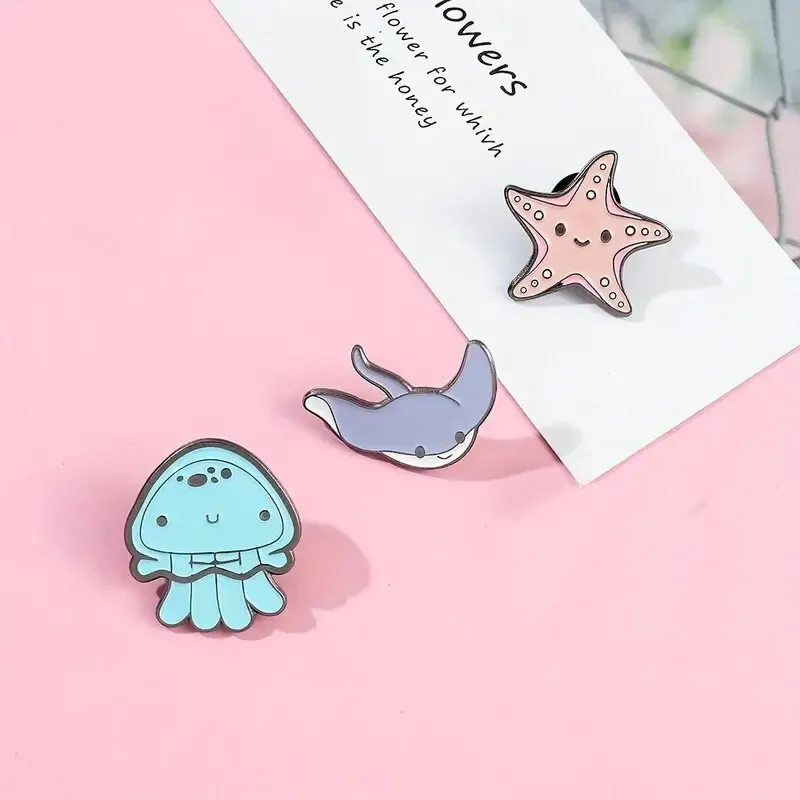 Meeres tier Brosche Pin Set Strahlen, Quallen, Seestern Metall Abzeichen Meeres schutz Abzeichen DIY...