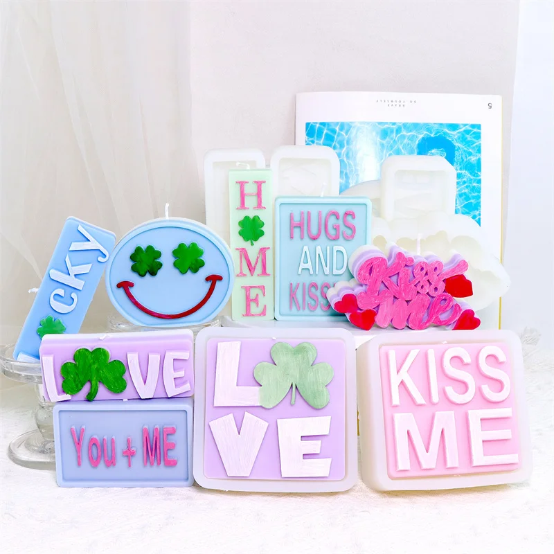 Flache Slogan Silikon Kerze Form LIEBE Slogan Lächeln Gesicht Klee Designs DIY Seife Kerzen Gip...