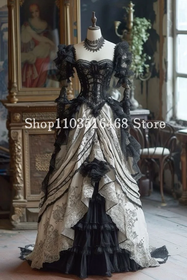 Fantasie viktoria nischen Abschluss ball Party kleid schwarz weiß gotisch Korsett Korsett Spit...
