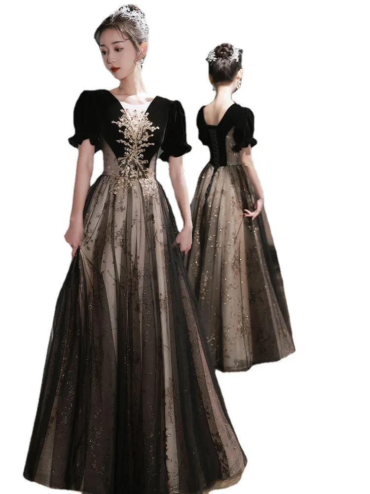 Elegante Frauen Abendkleid leichte Luxus Vintage Applikationen lange Bankett kleider weibliche forme...