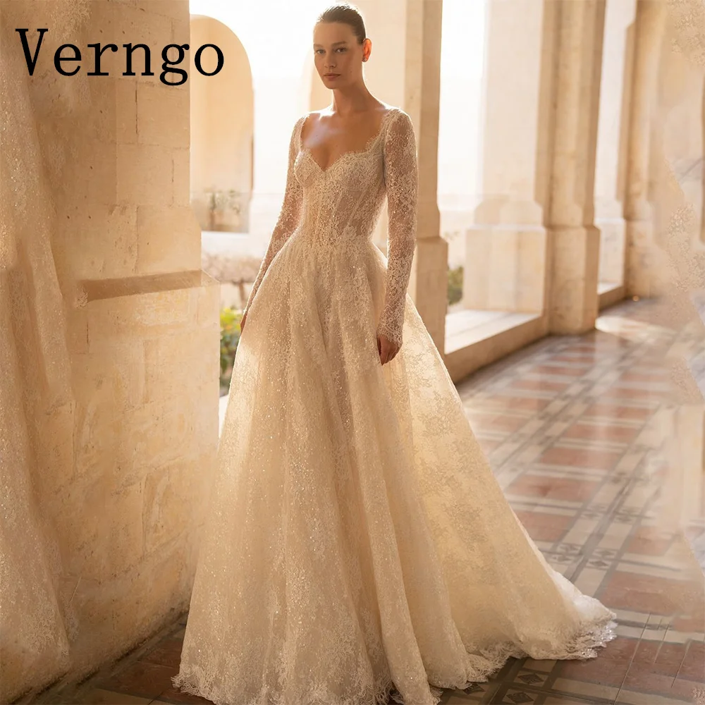 Verngo Luxus Spitze Brautkleid Schatz Langarm Brautkleid Pailletten...